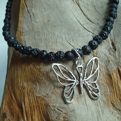 Necklace in sterling silver and lava stones on a stainless steel wire